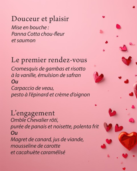 Menu Saint-Valentin : 59 € par personne (hors boissons)